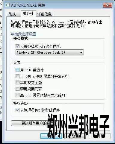 此時如何調(diào)試才能安裝數(shù)據(jù)庫2000,在AUTORUN.EXE上右擊,把兼容模式勾選上“以兼容模式運(yùn)行這個程序”,特權(quán)等級中勾選上“以管理員身份運(yùn)行此程序”。