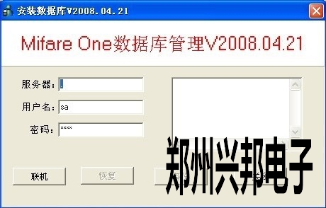 4、先點(diǎn)擊聯(lián)機(jī)按鈕,右邊消息框中提示連接數(shù)據(jù)庫成功后,點(diǎn)擊恢復(fù)按鈕,當(dāng)數(shù)據(jù)庫恢復(fù)完畢后,再次打開軟件系統(tǒng)就可以正常登陸了。