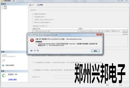 我們軟件的信息都存在數(shù)據(jù)庫中,當我們重裝系統(tǒng)或者更換電腦時,我們只要把數(shù)據(jù)庫備份,還原一下就可以。但還原有時候會報如下錯誤:
