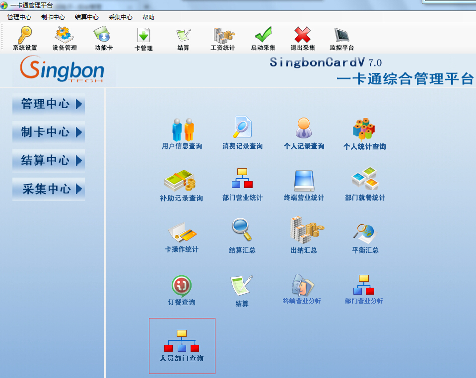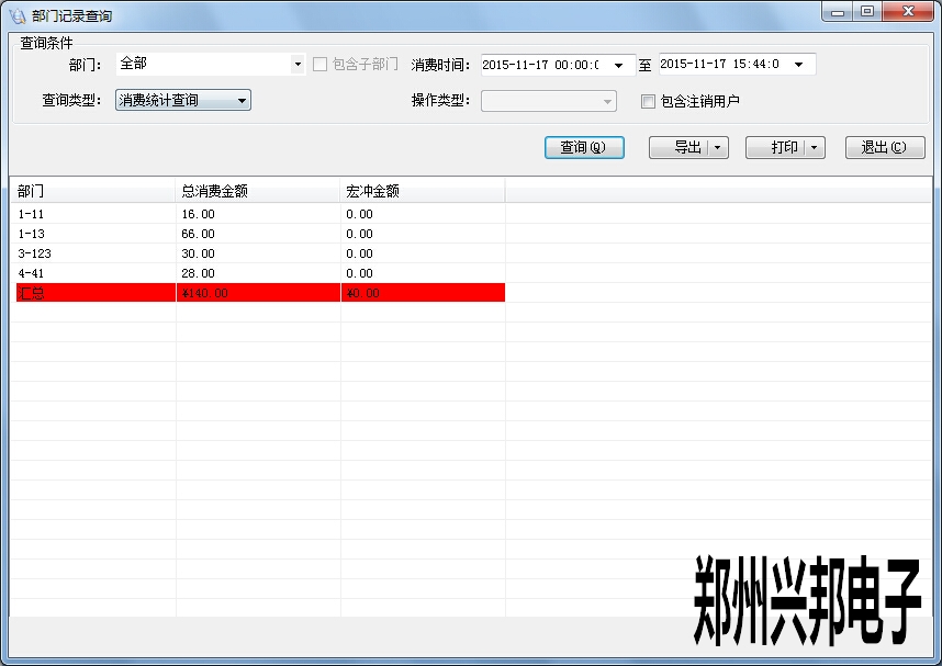 前提是要規(guī)劃好人員部門,對人員部門進行分類。查詢類型有三種:消費統(tǒng)計查詢,消費明細查詢,記錄明細查詢。