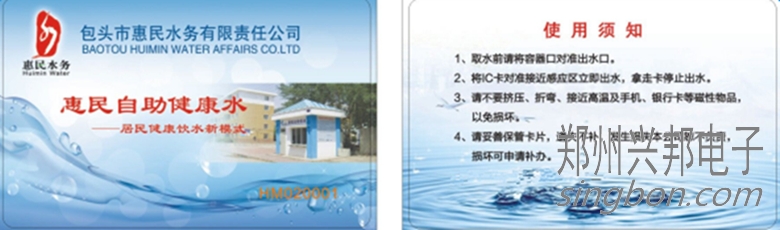 包頭市惠民水務(wù)公司使用IC卡水控機(jī)安裝在售水機(jī)上,居民辦理一張水卡,在卡里充值過錢后就可以在售水機(jī)上面安裝好的IC卡水控機(jī)上刷卡取水,居民喝水也更加的方便快捷。