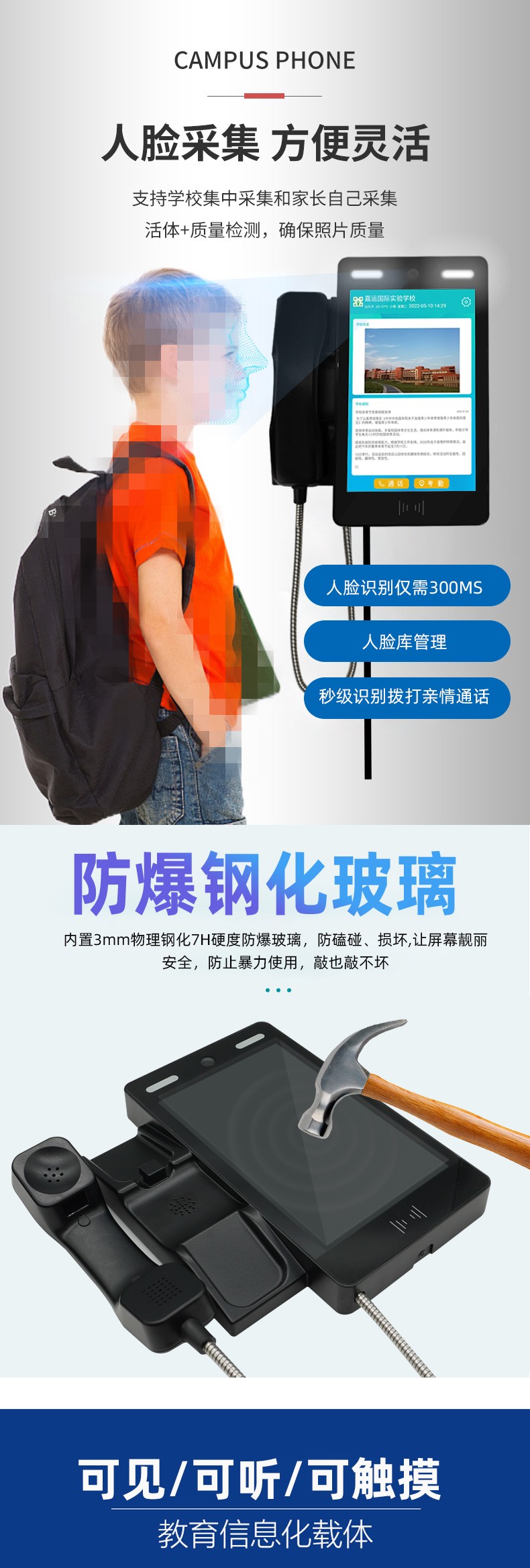 人臉識(shí)別可視話機(jī)產(chǎn)品穩(wěn)定,使用方便。可以通過人臉識(shí)別,撥打親子電話,學(xué)生可以選擇語音或視頻。
