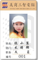 人像識別卡最大的特點是將人像照片經(jīng)過掃描直接打印在卡上,圖像清晰,效果與相片相同。制作人像識別卡的卡基可以是一般PVC卡,也可以是磁卡或IC卡,因客戶的用途而定。