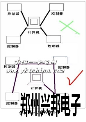 如果線路過(guò)長(zhǎng)和設(shè)備過(guò)多,請(qǐng)?jiān)谧詈笠慌_(tái)設(shè)備上增加終端電阻(有跳線加載)總線最多可掛接128臺(tái)控制器。