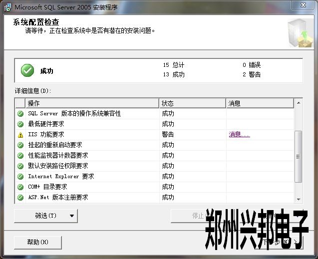 win7系統(tǒng)2005數(shù)據(jù)庫安裝時提示IIS功能要求是警告
