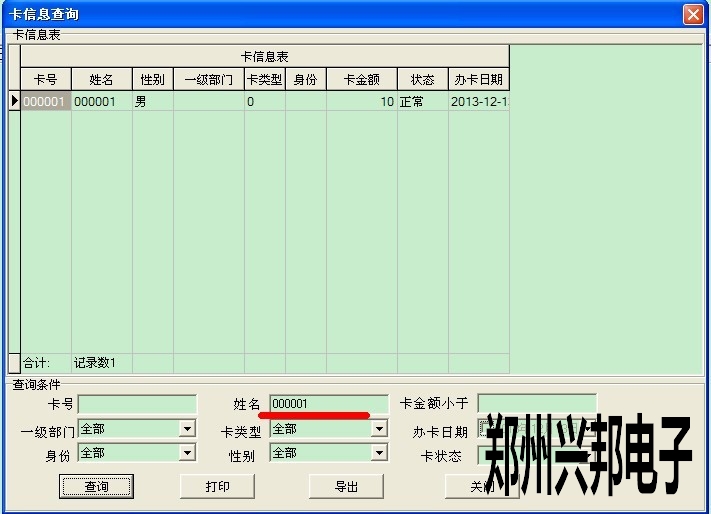 如果不知道此卡的卡號(hào),可以從卡信息表中查看到此卡的信息,點(diǎn)數(shù)據(jù)管理--卡信息表,打開此表后輸入姓名,然后查詢就可以查看到此卡的卡號(hào),然后再掛失即可,如下圖所示