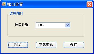 2)打開端口設(shè)置后選擇端口號,然后點(diǎn)擊測試,下載密碼,保存,測試成功讀卡器會響一聲