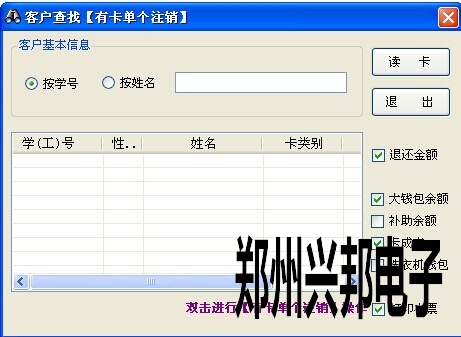 打開(kāi)軟件 制卡中心-卡管理 在空白處鼠標(biāo)右擊,選擇有卡單個(gè)注銷(xiāo)或者無(wú)卡單個(gè)注銷(xiāo),輸入學(xué)號(hào)或者姓名查詢(xún)出人員信息后,鼠標(biāo)雙擊查詢(xún)出的人員信息,即可完成注銷(xiāo)。