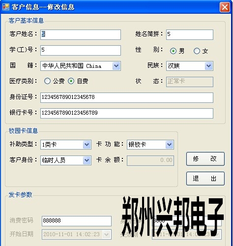 把用戶卡放在讀卡器感應(yīng)區(qū)。修改好用戶信息后,單擊修改,提示修改信息成功。