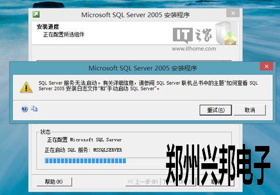 6、當(dāng)出現(xiàn)Sql Server 2005無法啟動時,這個時候就不先點擊重試或者取消。