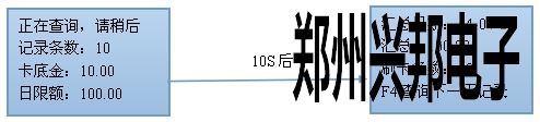 設(shè)置好固定的轉(zhuǎn)賬金額后,將卡片在刷卡區(qū)中央附近輕輕一靠便可,轉(zhuǎn)賬成功后會有語音提示轉(zhuǎn)賬成功或者播報轉(zhuǎn)賬金額,轉(zhuǎn)賬機(jī)顯示界面會顯示轉(zhuǎn)賬金額,大錢包和小錢包的當(dāng)前金額。如下圖所示: