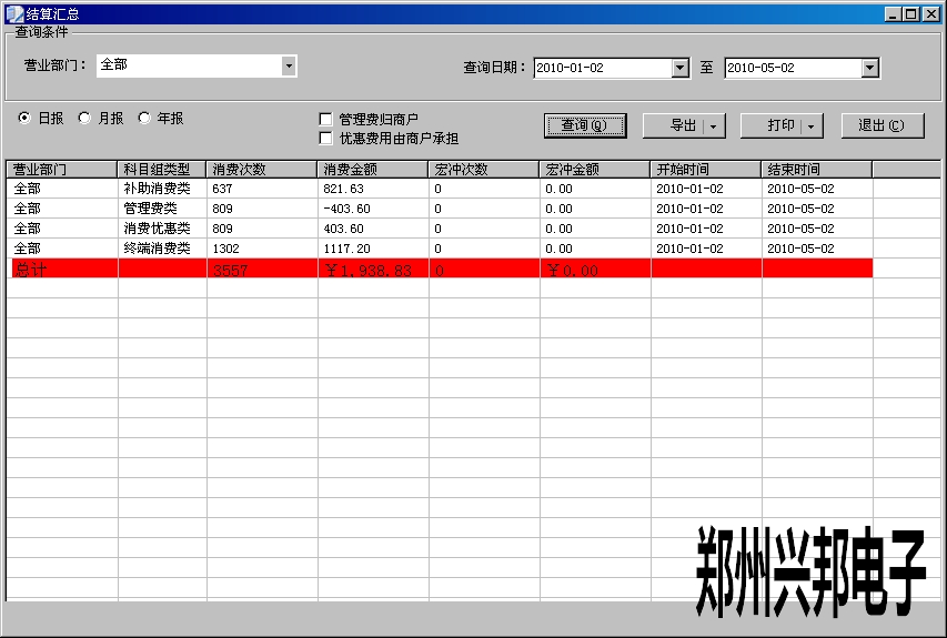 總計(jì)中的消費(fèi)金額為會(huì)計(jì)給商戶結(jié)算時(shí),應(yīng)該給商戶的金額。