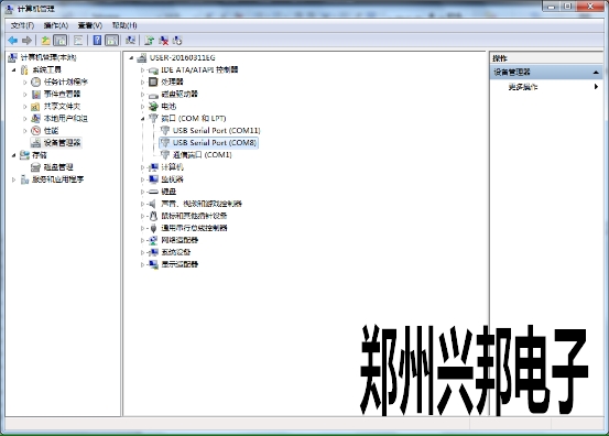 1、單擊計算機—單擊右鍵—管理—設(shè)備管理—端口。找到所用usb線端口。如下圖: