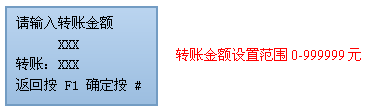 2、按2設(shè)置轉(zhuǎn)帳金額,輸入每次要轉(zhuǎn)帳的金額,確定按#號鍵。