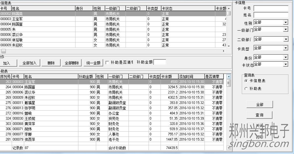 2、軟件上卡管理--補(bǔ)助入卡輸入。在里面添加補(bǔ)助的人員和金額。如果需要清零的話就把清零勾選上。
