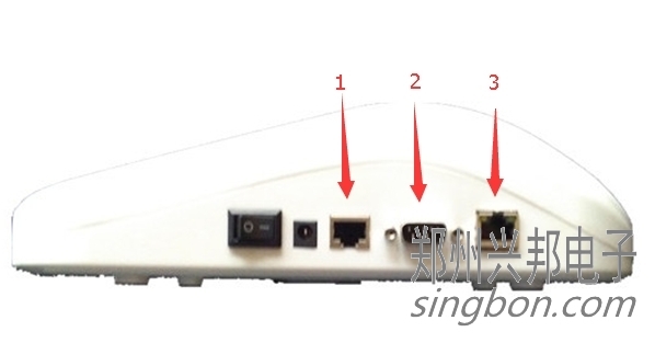 圖3 升級(jí)機(jī)側(cè)面圖(注:1為水晶頭插口;2為九針母頭插口,3為網(wǎng)線插口)